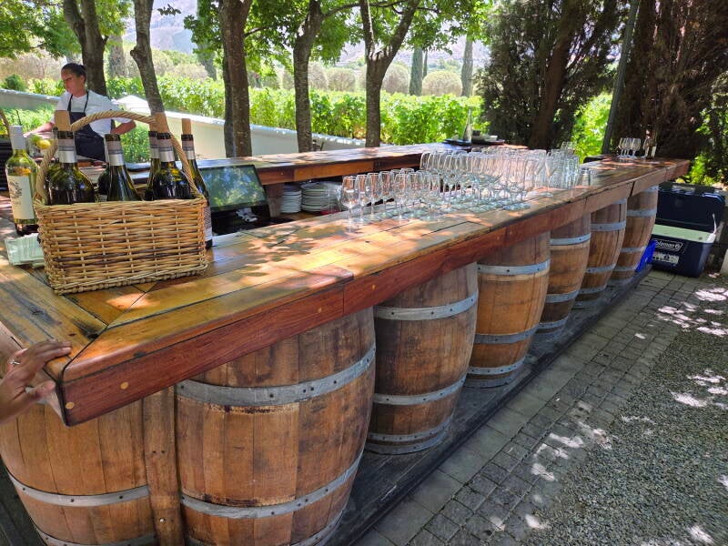 Der nächste Halt war auf dem Weingut Grande Provence. Das war am Ende mein Favorit. Es war richtig malerisch dort. Der Garten war wundervoll gepflegt und überall gab es Kunstwerke zu bewundern. Auch hier reichte die Geschichte bis ins Jahr 1694 zurück, als Pierre Joubert, ein französischer Protestant, der vor religiöser Verfolgung floh, mit weiteren Hugenotten hier ankam. Der damalige Pioniergeist führte zu weitläufigen Weinbergen und der ikonischen kapholländischen Architektur, die die Region immer noch ziert.